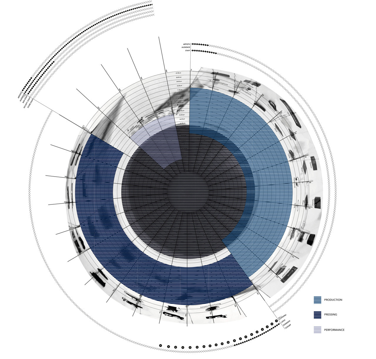 a analysis for groove works a project whilst studying, 2018 programme drawing, explaining the three different activities on site as well as inventory and inhabitation
