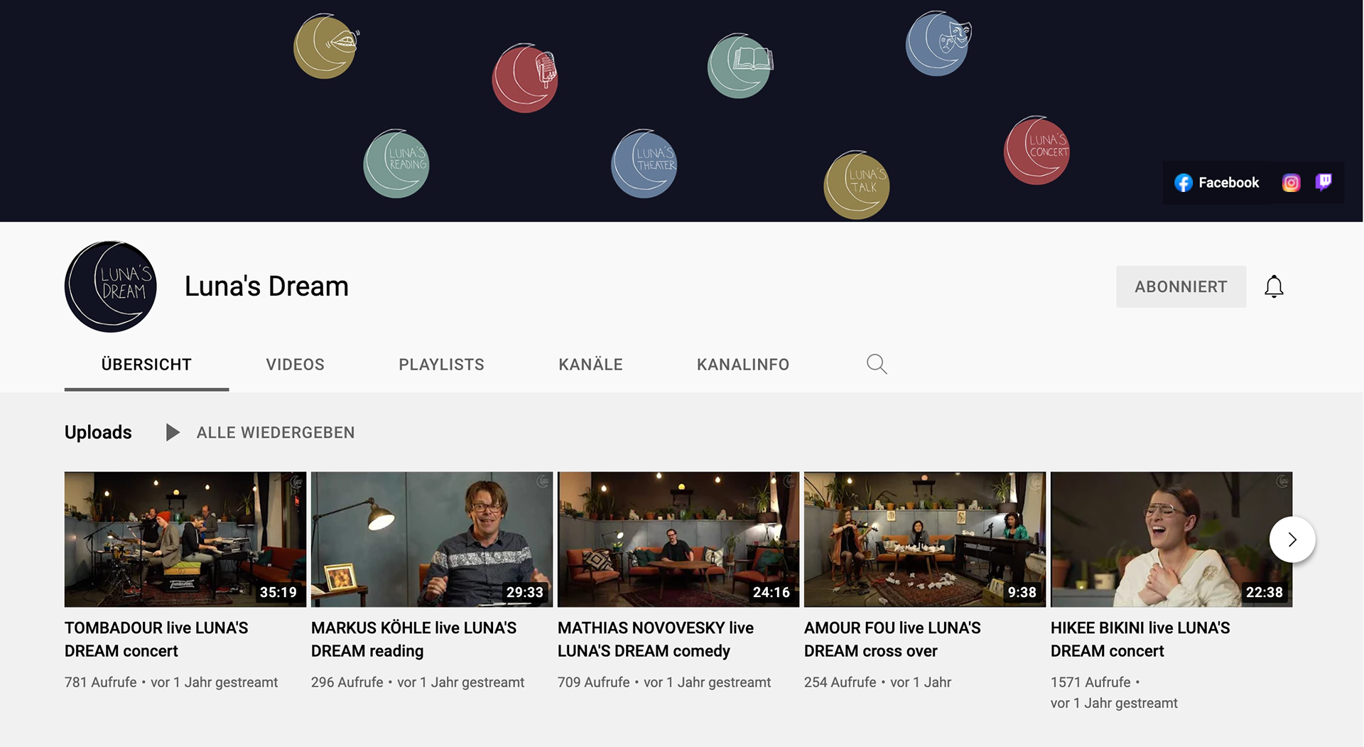 a project 2019 design for a live stream on youtube streaming concerts, readings and theater www.youtube.com/@lunasdream8708